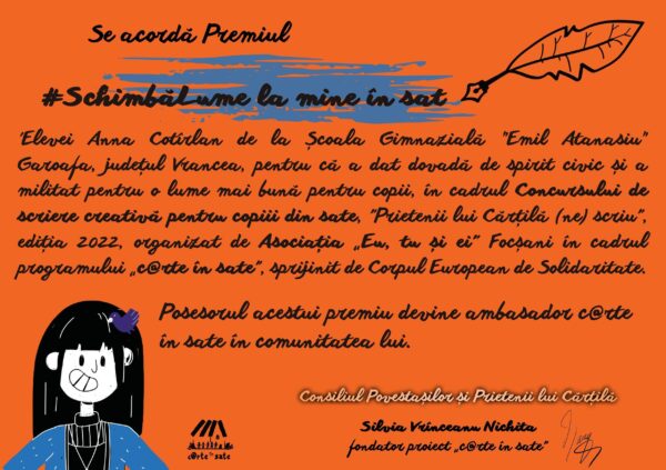 🏅 Scrisoarea Anei este fost răsplătită cu Premiul civic „c@rte in sate pentru lumi curate’’.