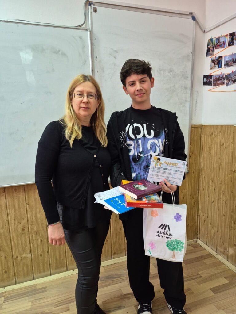 Laurențiu-Emanuel Pana, de la Liceul Teoretic „Duiliu Zamfirescu”, alături de Prof. îndrumător Alina Elena Galan „Viața, un tablou neterminat, Viața, un tablou frumos pictat, Viața, o pasăre în zbor, Dar…