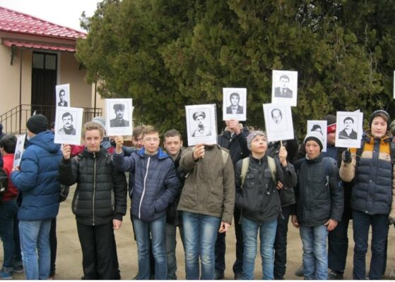 Copii din Cocieri onorând memoria eroilor din Războiul de pe Nistru