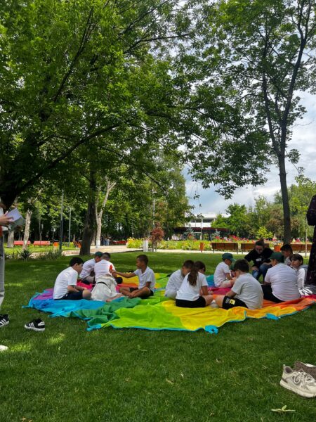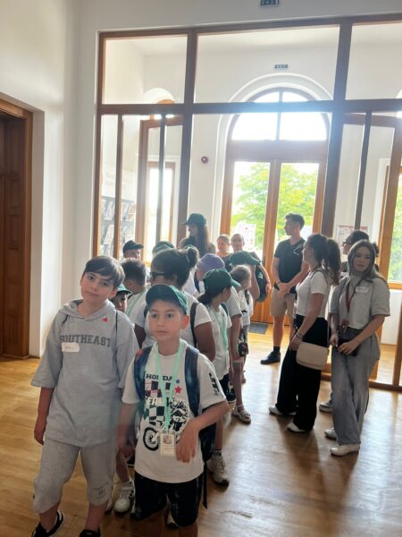 De la librărie am plecat către Muzeul de Arheologie și Istorie din Focșani, unde doamna Mădălina le‑a răspuns tuturor întrebărilor despre exponatele vechi de până la câteva mii de ani. Clădirea, ridicată la sfârșitul secolului al XIX‑lea de o familie de târgoveți armeni, i‑a fermecat pe micuții noștri exploratori. După turul ghidat ne‑am îndreptat nerăbdători spre locul de joacă din Parcul „Nicolae Bălcescu”, unde copiii s‑au bucurat de pizza, prăjituri și au interacționat cu voluntarii povestași și cărțile lor. Au avut ocazia să vorbească și în limba engleză alături de unul dintre voluntarii adulți ai asociației, John. La final oaspeții noștri au primit câte un cadou-surpriză pentru încheierea anului școlar și au participat la un concurs de ghicitori în urma căruia au câștigat jucării de pluș.