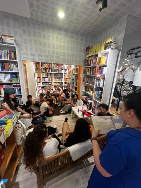 După ce „ne‑am încărcat bateriile”, am pornit spre librăria Humanitas, unde îi aștepta următoarea surpriză: un atelier de poveste alături de colegii mei voluntari și de doamna Cristina, librar în cadrul librăriei Humanitas. Am citit împreună, cu voce tare, povestea „Fantasticele cărți zburătoare ale domnului Morris Lessmore”, un volum‑manifest al speranței care demonstrează că poveștile pot vindeca, inspira și da sens vieții. Ilustrațiile i‑au cucerit pe copii, care au reținut și cele mai mici detalii.